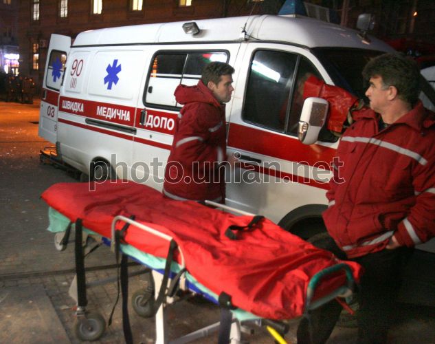 Лікарі швидкої допомоги готуються надавати медичну допомогу постраждалим в результаті вибуху