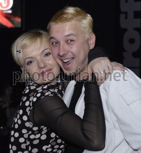 Учасники українського гурту "Іграшки" Світлана Коноваленко та Костянтин Ягольник в одному з нічних клубів Києва, в п’ятницю, 8 лютого 2008 р. Фото Олега Гордієнка / УНІАН