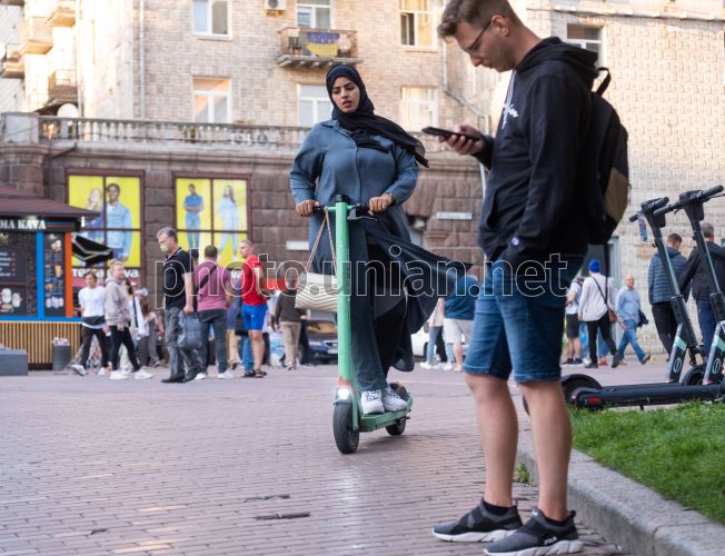 Дівчина катається на електросамокаті, в Києві,25 серпня 2021 р. Фото УНІАН