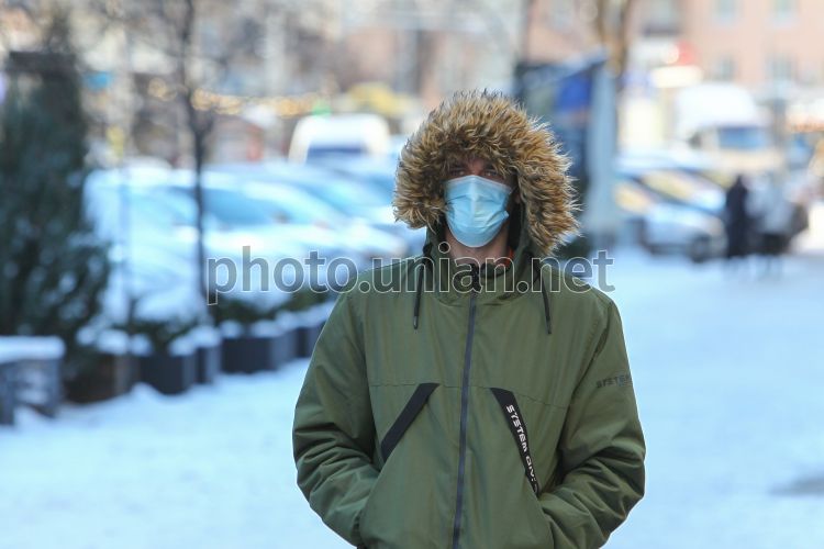 Чоловік у захисній масці, в Києві, 21 грудня 2021 р. Фото Прядко Денис / УНІАН
