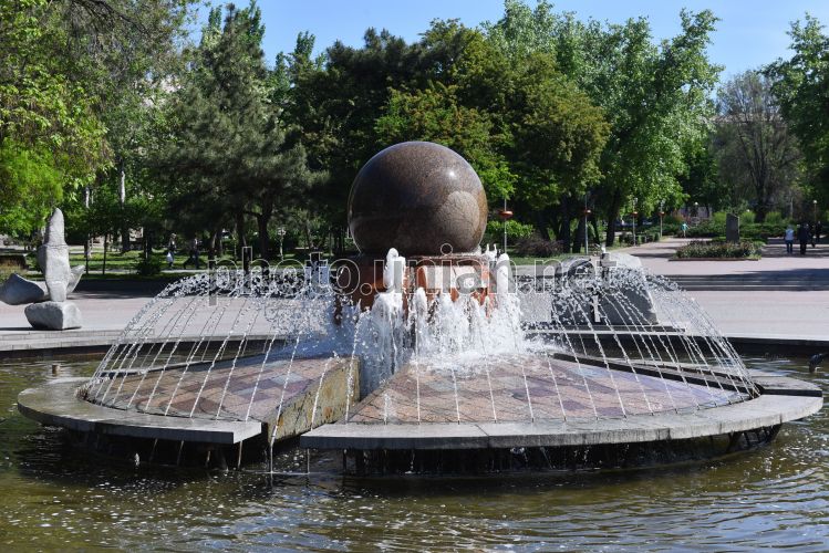 Фонтан життя у Запоріжжі, 24 травня 2022 р. Цього дня завершуються підготовчі роботи до запуску фонтану. 25 травня Фонтан життя запрацює у звичному режимі. Фонтан має кулю, що обертається під дією води. А скульптури, які знаходяться навколо фонтану, відображають історію українського народу. Фото Прилепа Олександр / УНІАН