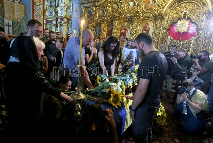 Прощання з військовослужбовцем ЗСУ, ведучим Військового хіт-параду Карімом Гуламовим в Михайлівському соборі, в Києві, 21 липня 2022 р. Карім Гуламов став широко відомим у 2018 році як ведучий Військового хіт-параду на каналі М2. Фото Синиця Олександр / УНІАН
