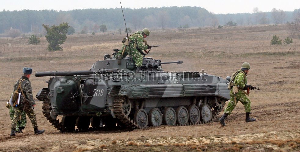 Курсанти після чотирьох місяців навчання демонструють набуті навички на полігоні 169-го навчального центру Сухопутних військ Збройних сил України ”Десна” в Чернігівській обл. в понеділок, 24 березня 2008 р. Фото Олександра Синиці / УНІАН
