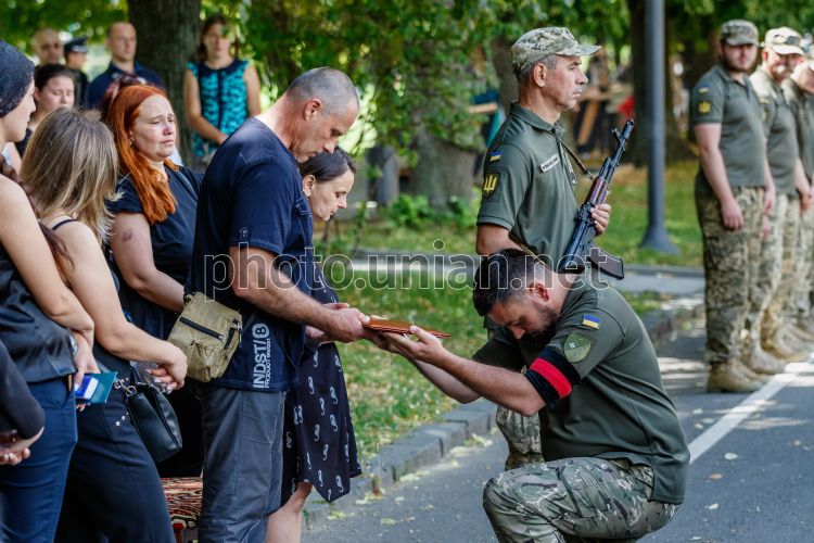 Церемонія прощання із загиблим військовослужбовцем Олександром Вашашем в Ужгороді, 11 липня 2023 р. Військовослужбовець протитанкового взводу роти вогневої підтримки військової частини А7080 Олександр Вашаш загинув 5 липня 2023 р. Фото Немеш Янош / УНІАН