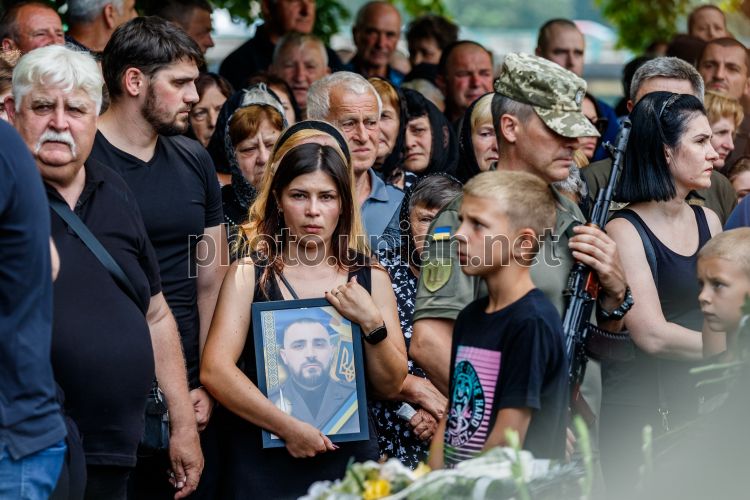 Церемонія прощання із загиблим військовослужбовцем, заступником командира групи спецпризначення військової частини А 6175 Анатолієм Тегзою в Ужгороді, 22 липня 2023 р. Врятувавши побратима та командира суміжного підрозділу, Анатолій Тегза загинув під час штурму ворожих позицій 14 липня 2023 року. Фото Немеш Янош / УНІАН
