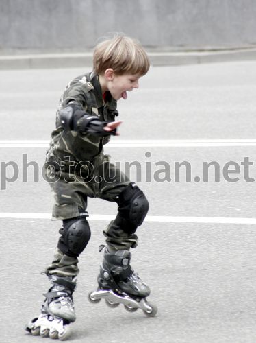 Хлопчик катається на роликах під час святкування міжнародного Дня Землі та Всеукраїнського дня навколишнього середовища, в Києві у неділю, 20 квітня 2008 р. Учасники акції намагалися привернути увагу влади до проблем сучасного стану навколишнього середовища. Фото Олени Старостенко / УНІАН