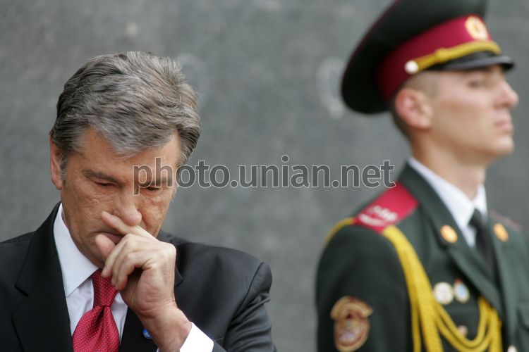 Президент України Віктор Ющенко, ліворуч, біля Секретаріату Президента під час церемонії зустрічі з президентами шести держав, які прибули на Енергетичний саміт, в Києві, в п`ятницю, 23 травня 2008 р. Серед основних питань порядку денного саміту – попередній висновок техніко-економічного обгрунтування для проекту Євро-Азійського нафтотранспортного коридору (ЄАНТК). Планується, що до розгляду розділів держав буде запропоновано 3 варіанти реалізації ЄАНТК після переведення нафтопроводу в аверсний режим: у напрямі Польщі, Словаччини й Білорусі. Також голови держав розглянуть концепцію створення неформального відкритого Співтовариства енерготранзитних держав на просторі від Балтійського до Чорного і Азовського морів; попередні висновки маркетингових досліджень щодо створення в Україні високотехнологічного комплексу для переробки каспійської нафти; перспективи розвитку ядерно-енергетичної галузі в Україні. Фото Сергія Светлицького / УНІАН