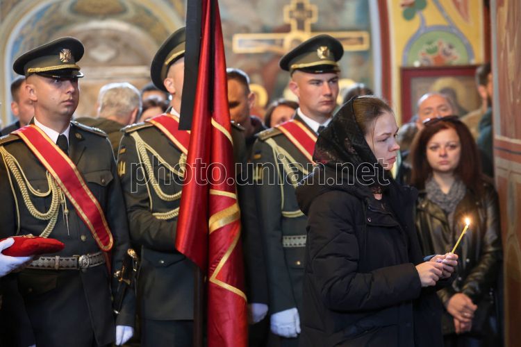 Церемонія прощання з загиблим захисником України Тарасом Шпуком та його побратимами Микитою Охріменком, Віктором Коцюбинським, Олегом Вишняковим та Романом Веркальцем в Києві, 25 вересня 2025 р. На фронті під час виконання бойового завдання загинув колишній співробітник фонду "Повернись живим", один із засновників ветеранського спорту в Україні та військовослужбовець Тарас Шпук. Йому було 34 роки. Фото Ковальчук Віктор / УНІАН