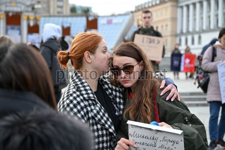 Активісти під час загальнонаціональної хвилини мовчання за загиблими внаслідок збройної агресії рф проти України, в центрі Києва, 1 жовтня 2025 р. У центрі Києва щодня зупиняють рух для загальнонаціональної хвилини мовчання. Захід присвячений пам’яті всіх загиблих у війні, яку росія розв’язала проти України. Фото Ратинський В'ячеслав / УНІАН