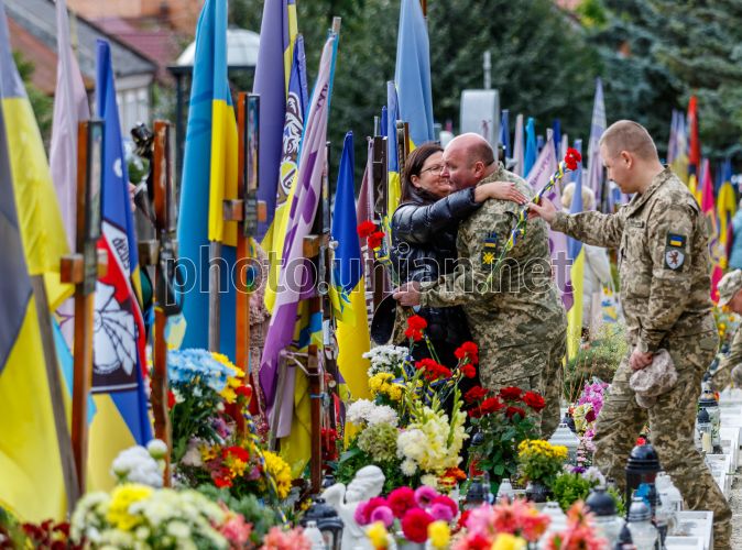 Військовослужбовці приносять квіти до могил побратимів в День захисників і захисниць України, на Пагорбі Слави в Ужгороді, 1 жовтня 2025 р. Фото Немеш Янош / УНІАН