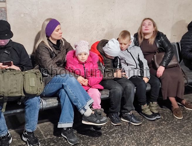 Пасажири в укритті під час тривоги на Центральному залізничному вокзалі в Києві