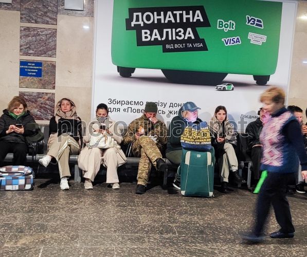 Пасажири в укритті під час тривоги на Центральному залізничному вокзалі в Києві