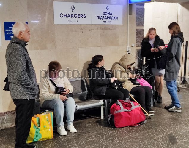 Пасажири в укритті під час тривоги на Центральному залізничному вокзалі в Києві