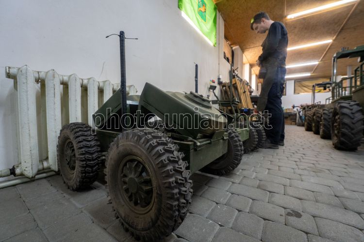 Співробітники підприємства BENDER ROBOTS збирають та випробовують наземні роботизовані комплекси власного виробництва, в Харкові, 3 жовтня 2025 р. Наземні роботизовані комплекси (НРК) — це сучасні роботизовані системи, які виконують небезпечні, незручні або неможливі для людини завдання на полі бою, як-от: розвідка, доставка боєкомплекту, вивезення поранених та виконання ударних місій. Фото Марієнко Андрій / УНІАН