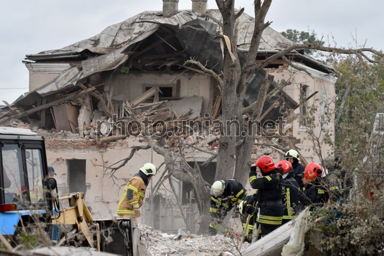 Наслідки російського обстрілу в селі Лапаївка (Львівська область), 5 жовтня 2025 р. РФ вночі 5 жовтня здійснила масовану дронову та ракетну атаку на Україну. Основною ціллю атаки став Львів та Львівська область. В селі Лапаївка загинула родина з чотирьох людей. Фото Тис Микола / УНІАН