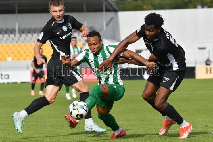 Ігровий момент матчу 8-го туру Чемпіонату України з футболу між ФК "Олександрія" (Олександрія) та ФК "Карпати" (Львів), в Олександрії (Кіровоградська область), 4 жовтня 2025 р. Матч закінчився з рахцнком 0:2 на користь ФК "Карпати". Фото Тис Микола / УНІАН
