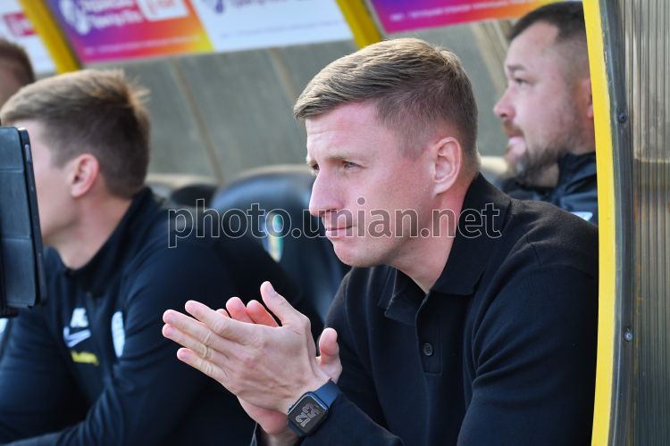 Головний тренер ФК "Олександрія" (Олександрія) Кирило Нестеренко під час матчу 8-го туру Чемпіонату України з футболу між ФК "Олександрія" (Олександрія) та ФК "Карпати" (Львів), в Олександрії (Кіровоградська область), 4 жовтня 2025 р. Матч закінчився з рахцнком 0:2 на користь ФК "Карпати". Фото Тис Микола / УНІАН