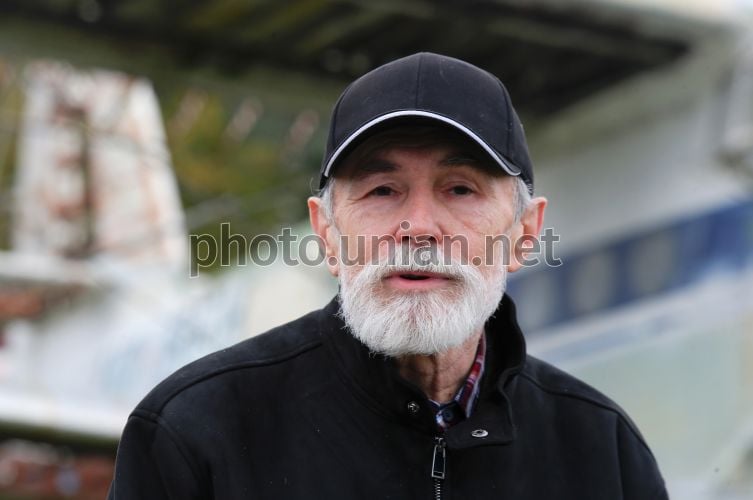 Науковий співробітник Державного музею авіації України Ростислав Мараєв під час пресконференції з нагоди передачі музею літака-рекордсмена АН-6 і раритетного пасажирського АН-2 на постійне зберігання, у Державному музеї авіації ім. О.К. Антонова, в Києві, 7 жовтня 2025 р. Фото Синиця Олександр / УНІАН