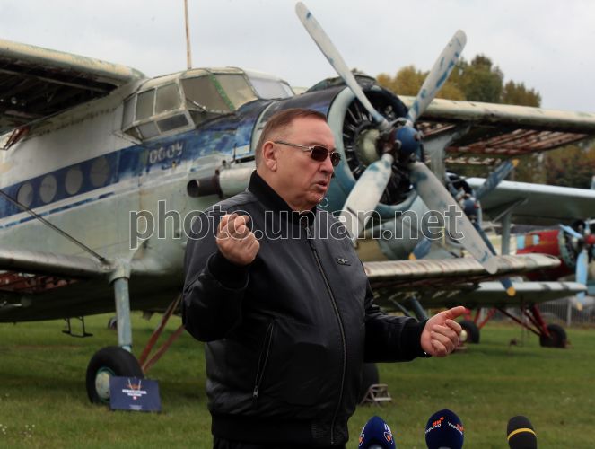 Президент громадської організації "Асоціація розвитку авіації України", президент акціонерного товариства "АС аеродром "Бородянка" Олександр Бадрудінов під час пресконференції з нагоди передачі Державному музею авіації України літака-рекордсмена АН-6 і пасажирського АН-2 на постійне зберігання, у Державному музеї авіації ім. О.К. Антонова, в Києві, 7 жовтня 2025 р. Фото Синиця Олександр / УНІАН