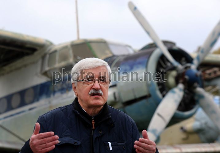 Провідний науковий співробітник Державного музею авіації України Валерій Романенко під час пресконференції, присвяченої передачі державній частині Музейного фонду України єдиного в світі збереженого екземпляра літака Ан-6 та раритетного літака Ан-2П, у Державному музеї авіації ім. О.К. Антонова, в Києві, 7 жовтня 2025 р. Фото Синиця Олександр / УНІАН