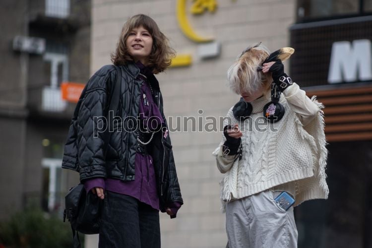 Стильно і незвично одягнені дівчата на вулиці у Києві, 9 жовтня 2025 р. Фото УНІАН