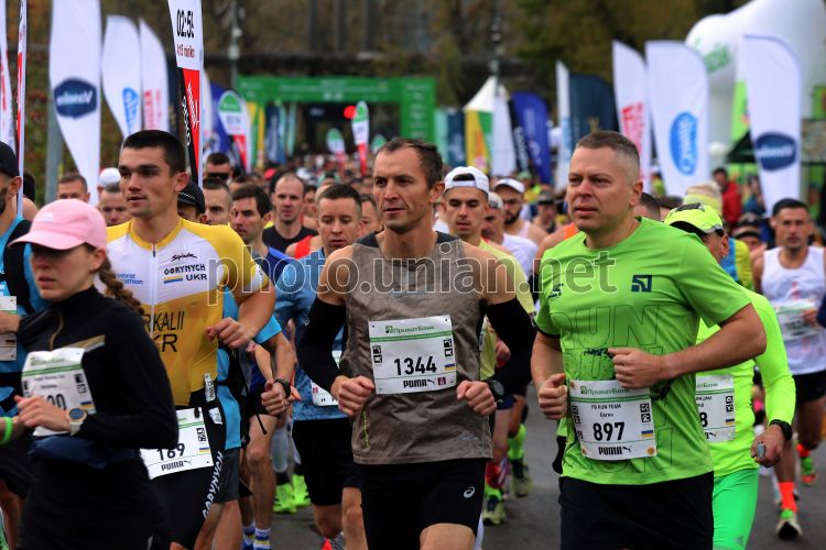 Учасники "Марафону Незламності" долають дистанцію 42 км (марафон), у Києві, 12 жовтня 2025 р. Це вже п'ятнадцятий благодійний забіг. 11 жовтня у забігу взяли участь аматори. 12 жовтня відбувся напівмарафон — 21 кілометр, та марафон — 42 кілометри. Загалом у забігу взяли участь понад 13 тисяч людей. Фото Синиця Олександр / УНІАН