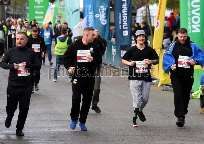 Учасники "Марафону Незламності" долають дистанцію 42 км (марафон), у Києві, 12 жовтня 2025 р. Це вже п'ятнадцятий благодійний забіг. 11 жовтня у забігу взяли участь аматори. 12 жовтня відбувся напівмарафон — 21 кілометр, та марафон — 42 кілометри. Загалом у забігу взяли участь понад 13 тисяч людей. Фото Синиця Олександр / УНІАН