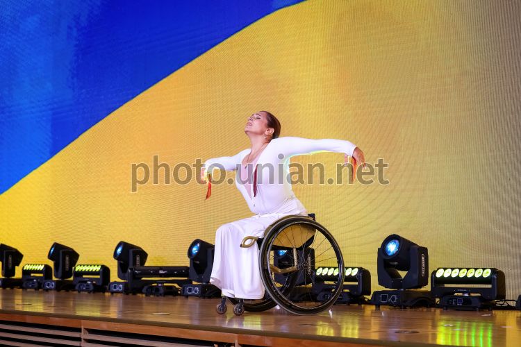 Танець на візку на сцені під час "Ukrainian Women Festival DIVA" в Києві, 11 жовтня 2025. Фото Горлушко Вальдемар / УНІАН