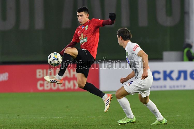 Ігровий момент матчу 6-го туру Чемпіонату України серед команд УПЛ (Прем'єр-ліга) з футболу (сезон 2025/26) між ФК «Полісся» (Житомир) та ФК "Карпати" (Львів) на стадіоні Центральний у Житомирі, 13 грудня 2025 р. Матч закінчився з рахунком 3:2 на користь ФК «Полісся» (Житомир). Фото Тис Микола / УНІАН