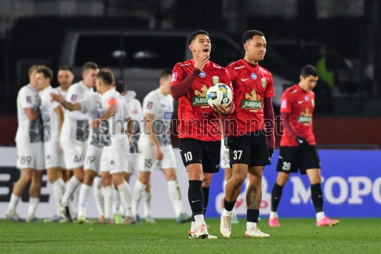 Ігровий момент матчу 6-го туру Чемпіонату України серед команд УПЛ (Прем'єр-ліга) з футболу (сезон 2025/26) між ФК «Полісся» (Житомир) та ФК "Карпати" (Львів) на стадіоні Центральний у Житомирі, 13 грудня 2025 р. Матч закінчився з рахунком 3:2 на користь ФК «Полісся» (Житомир). Фото Тис Микола / УНІАН
