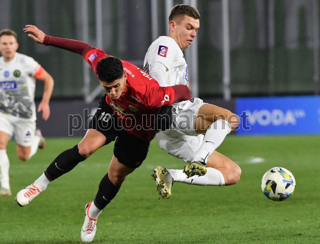 Ігровий момент матчу 6-го туру Чемпіонату України серед команд УПЛ (Прем'єр-ліга) з футболу (сезон 2025/26) між ФК «Полісся» (Житомир) та ФК "Карпати" (Львів) на стадіоні Центральний у Житомирі, 13 грудня 2025 р. Матч закінчився з рахунком 3:2 на користь ФК «Полісся» (Житомир). Фото Тис Микола / УНІАН