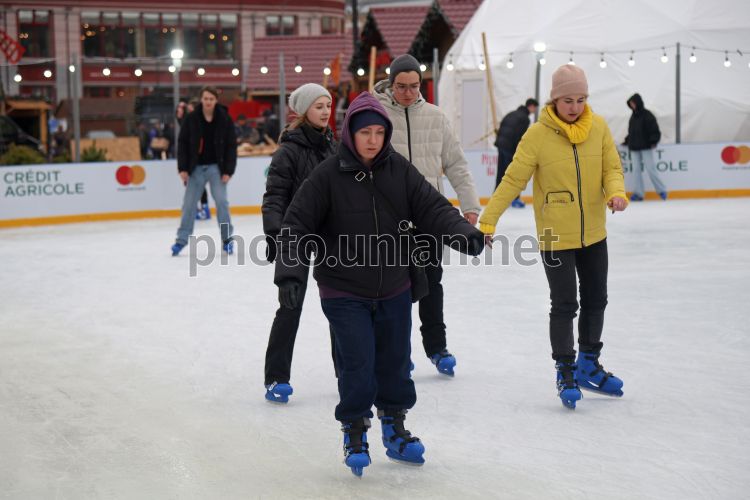 Молодь на ковзанці на Контрактовій площі в Києві, 17 грудня 2025 р. Фото Ковальчук Віктор / УНІАН
