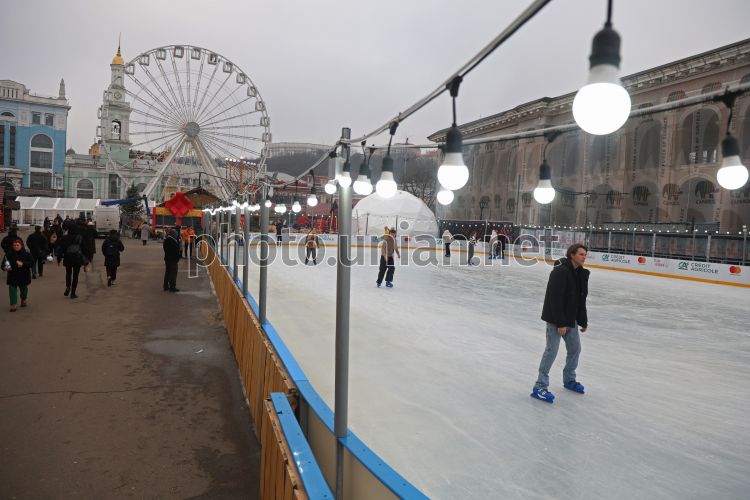 Молода людина катається на ковзанах на ковзанці на Контрактовій площі в Києві, 17 грудня 2025 р. Фото Ковальчук Віктор / УНІАН
