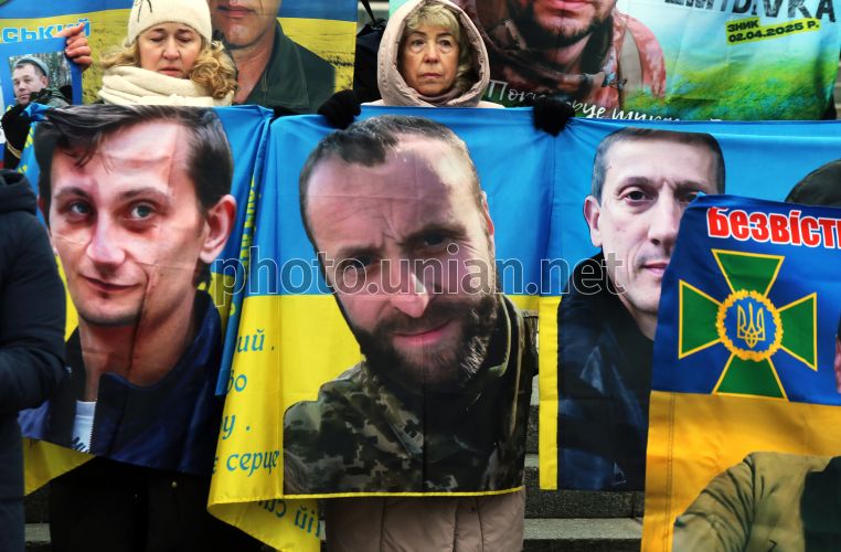 Мирна акція родин зниклих безвісти військовослужбовців 225 ОШБ-ОШП на Майдані Незалежності у Києві, 18 грудня 2025 р. Тисячі людей з різних міст України зібралися на Майдані Незалежності. Вони принесли фото зниклих безвісти. За кожним фото — життя, родина, біль і надія. "Ми виходимо, щоб нас почули!" - заклик родичів загиблих. Фото Синиця Олександр / УНІАН