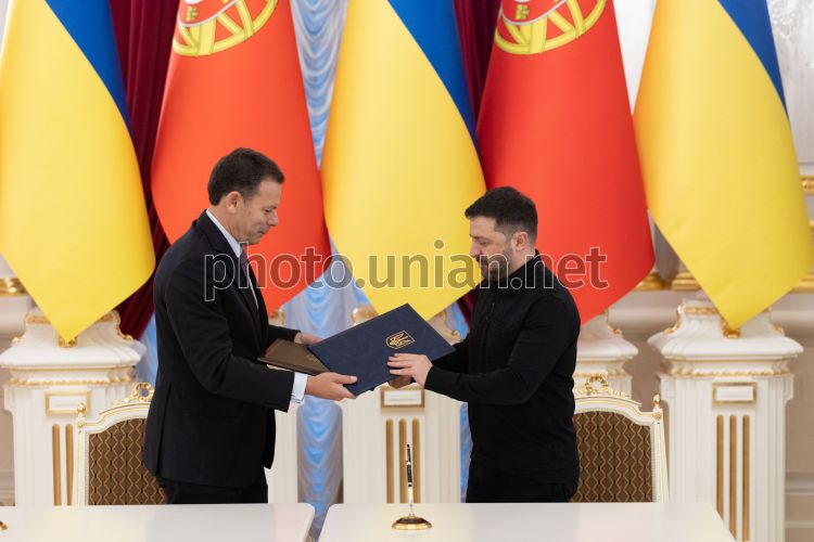 Президент України Володимир Зеленський та прем'єр-міністр Португалії Луїш Монтенегру під час зустрічі, в Києві, 20 грудня 2025 р. Україна і Португалія підписали спільну заяву для встановлення партнерства з виробництва морських дронів. Фото УНІАН