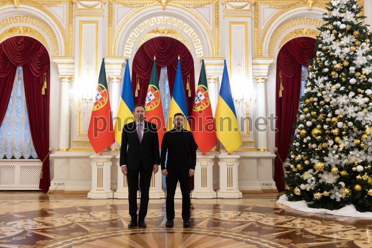Президент України Володимир Зеленський та прем'єр-міністр Португалії Луїш Монтенегру під час зустрічі, в Києві, 20 грудня 2025 р. Фото УНІАН