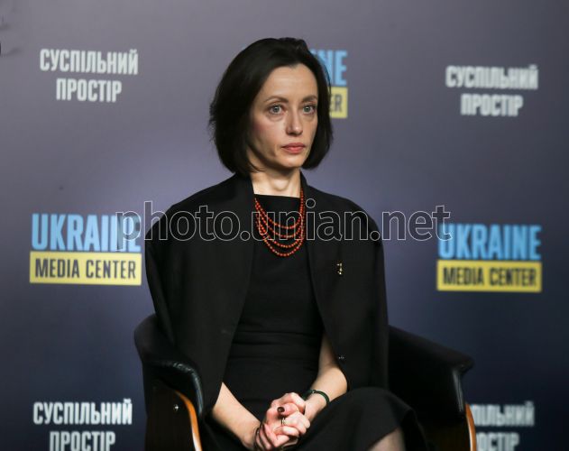 Заступниця міністра освіти і науки України Надія Кузьмичова під час підсумкового брифінгу Міністерства освіти і науки України (МОН) на тему: "Середня освіта у 2025 році", в Києві, 23 грудня 2025 р. Фото Синиця Олександр / УНІАН