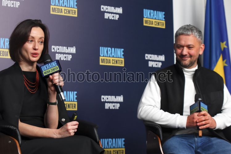 Заступниця міністра освіти і науки України Надія Кузьмичова, керівник Офісу впровадження НУШ (Нова українська школа) при МОН Ігор Хворостяний під час підсумкового брифінгу Міністерства освіти і науки України (МОН) на тему: "Середня освіта у 2025 році", в Києві, 23 грудня 2025 р. Фото Синиця Олександр / УНІАН