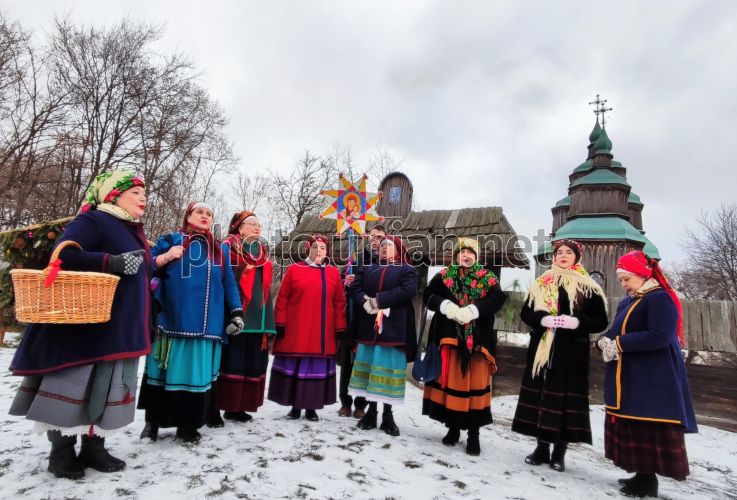 ФОТО З МОБІЛЬНОГО ТЕЛЕФОНА Святкування Різдва в Національному музеї народної архітектури та побуту України, у Пирогові, 27 грудня 2025 р. У програмі заходу: відтворення традиційних обрядів та звичаїв, що супроводжували святкування Різдва в українських селах; шопка — унікальна різдвяна інсталяція; виконання автентичних колядок творчими колективами. Фото Синиця Олександр / УНІАН