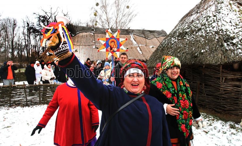 Святкування Різдва в Національному музеї народної архітектури та побуту України, у Пирогові, 27 грудня 2025 р. У програмі заходу: відтворення традиційних обрядів та звичаїв, що супроводжували святкування Різдва в українських селах; шопка — унікальна різдвяна інсталяція; виконання автентичних колядок творчими колективами. Фото Синиця Олександр / УНІАН