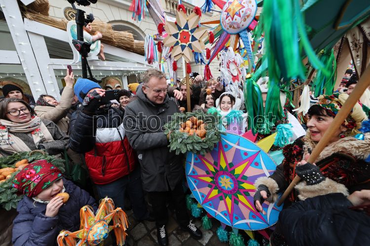 Міський голова Львова Андрій Садовий пригостив учасників різдвяними пампухами під час традиційної Ходи Звіздарів у Львові, 28 грудня 2025 р. У Львові відбулася традиційна Хода Звіздарів у межах фестивалю «Спалах різдвяної звізди». Цьогоріч подія стала особливою, адже фестиваль відзначив своє 20-річчя. Святкова хода зібрала понад дві тисячі учасників, об’єднавши мешканців і гостей міста навколо давніх різдвяних традицій.