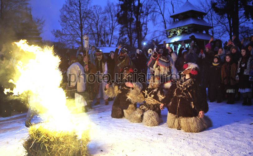 Народний обряд «Вашківецька Переберія» (Буковинська Маланка) в Музеї народної архітектури та побуту імені Климентія Шептицького (скансен «Шевченківський гай») у Львові, 28 грудня 2025 р. До Львівського скансену «Шевченківський Гай» з народним обрядом «Вашківецька Переберія» приїхали гості з Буковини. Напередодні презентації буковинської Переберії в Гаю, відбулися майстер-класи з створення одного з головних традиційних атрибутів Маланки – маски. Уроки провели буковинці Лідія та Василь Столяри з Вашківців — носії живої традиції, які за понад 15 років виготовили вже більш ніж тисячу масок для України та світу. Вашківецька Переберія — традиційне карнавальне дійство, яке відбувається у м. Вашківцях Вижницького району Чернівецької області 13-14 січня. Фото Кравс Євгеній / УНІАН