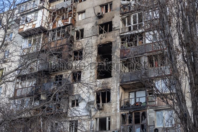 Частково зруйнований фасад та вибиті вікна у багатоповерховому будинку внаслідок масованого обстрілу Одеси російськими дронами, 31 грудня 2025 р. Російська армія в ніч проти 31 грудня атакувала Одесу ударними дронами. Пошкоджені житлові багатоповерхівки, є постраждалі. У частині міста відсутнє електропостачання, немає водо- та теплопостачання. Фото Гіманов Олександр / УНІАН