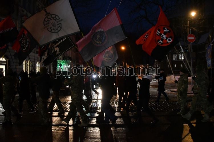 Факельна хода з нагоди 117 річниці з дня народження провідника Організації українських націоналістів Степана Бандери у Львові, 1 січня 2026 р. Цього дня у Львові відбулася смолоскипна хода з нагоди дня народження Степана Бандери. Учасники заходу вирушили від пам’ятника провіднику ОУН до проспекту Свободи і пам’ятника Шевченкові. Їхня хода супроводжувалася патріотичними гаслами і запаленими фаєрами. У ході взяли участь молодь, представники патріотичних громадських організацій, політики. Фото Тис Микола / УНІАН