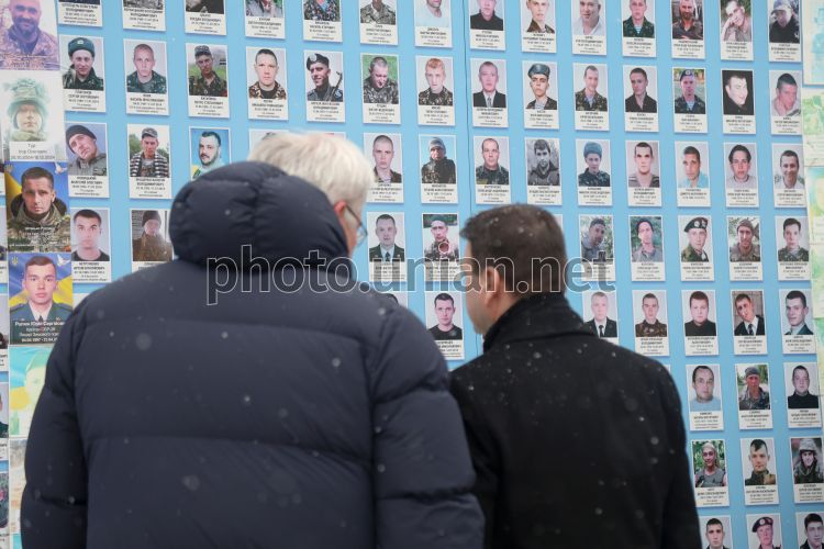 Міністр закордонних справ України Андрій Сибіга та міністр закордонних справ Чехії Петр Мацінка вшанували пам'ять загиблих захисників України біля Стіни памʼяті на Михайлівській площі, в Києві, 9 січня 2025 р. Новий глава МЗС Чехії Петр Мацінка прибув до Києва. Фото Ковальчук Віктор / УНІАН
