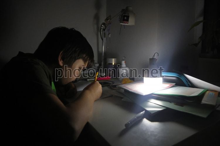 Школяр робить уроки без світла