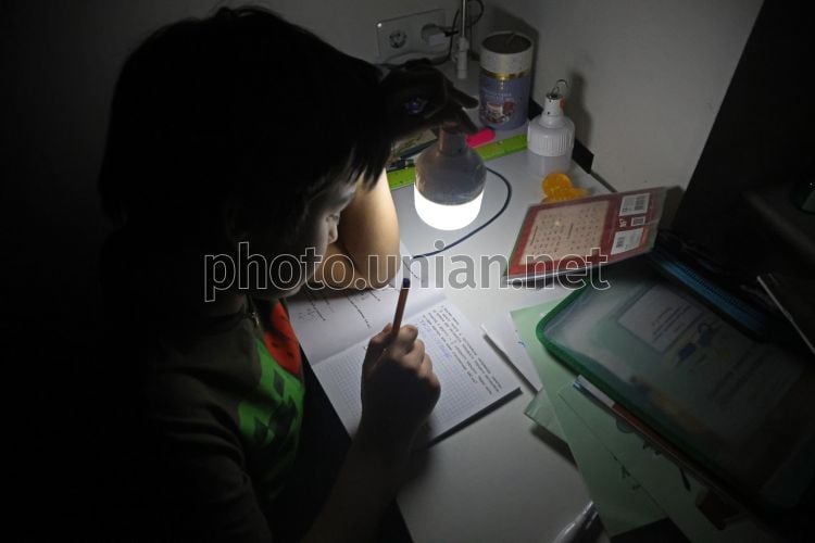 Школяр робить уроки без світла