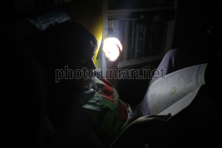 Школяр робить уроки без світла