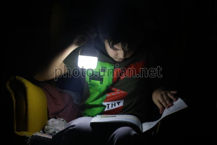 Школяр робить уроки без світла, в Києві, 14 січня 2025 р. У Києві внаслідок російського обстрілу 13 січня фіксують ще більший дефіцит електроенергії, ніж після обстрілу 9 січня. Потужності не вистачає для забезпечення критичної інфраструктури, повідомив міський голова Віталій Кличко. Без опалення зараз близько 500 багатоповерхівок. Фото Ковальчук Віктор / УНІАН