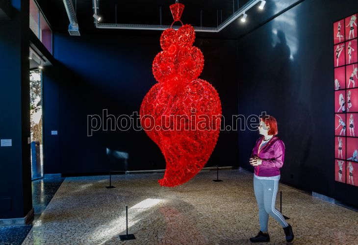 Туристка розглядає експонат виставки в арт-галереї саду Монте-Палацу на вершині гори Монте у місті Фуншал острова Мадейра (Португалія), 8 січня 2026 р.Фото Немеш Янош / УНІАН